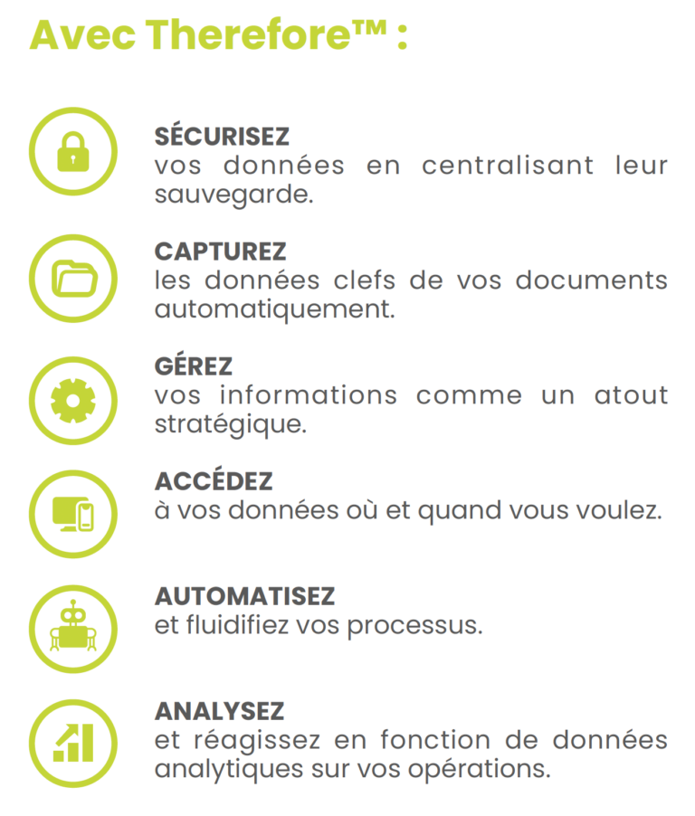 Dans un monde où l’efficacité, la productivité et la sécurité sont des impératifs pour les entreprises, l’accès rapide et centralisé à l’information devient crucial. C’est là que Therefore™ entre en jeu. Therefore™ est une solution de gestion des informations qui vise à révolutionner la façon dont les entreprises traitent leurs données, en automatisant les tâches et en offrant une accessibilité flexible aux informations, tout en garantissant la sécurité des données.